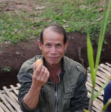 Mr. Om and his wife are the proud owners of a majestic elephant, which has now become part of the family at the Lao Elephant Home and Sanctuary. Their elephant is well cared for in the sanctuary, where it has found a safe and nurturing environment, Mr. Om and his wife are passionate about sharing their cultural heritage with visitors. They take great pride in demonstrating the art of making traditional Lao cloths to tourists. Their workshops provide a hands-on experience, allowing visitors to learn about the intricate techniques and rich history of Lao textile craftsmanship. This not only enriches the visitors' experience but also helps preserve and promote Lao cultural traditions.